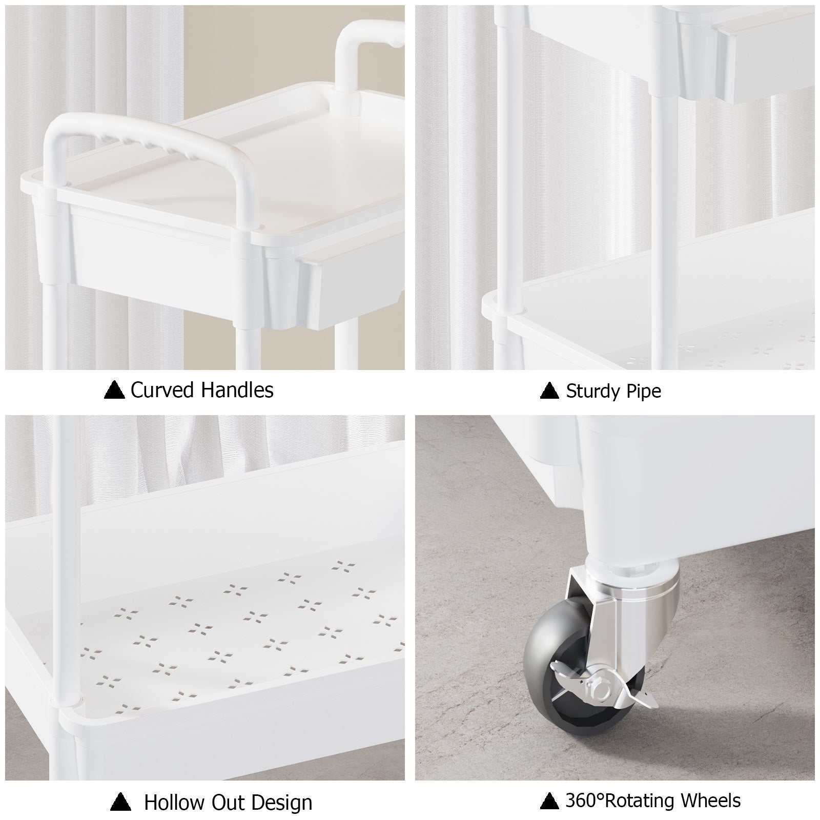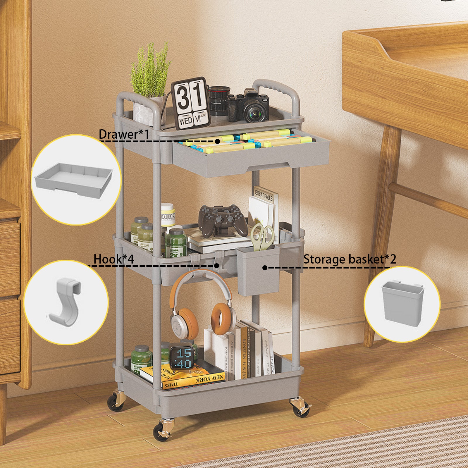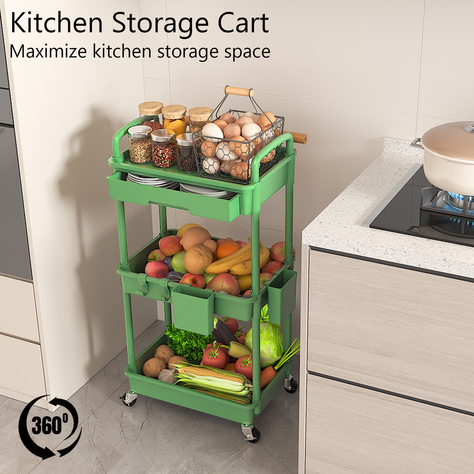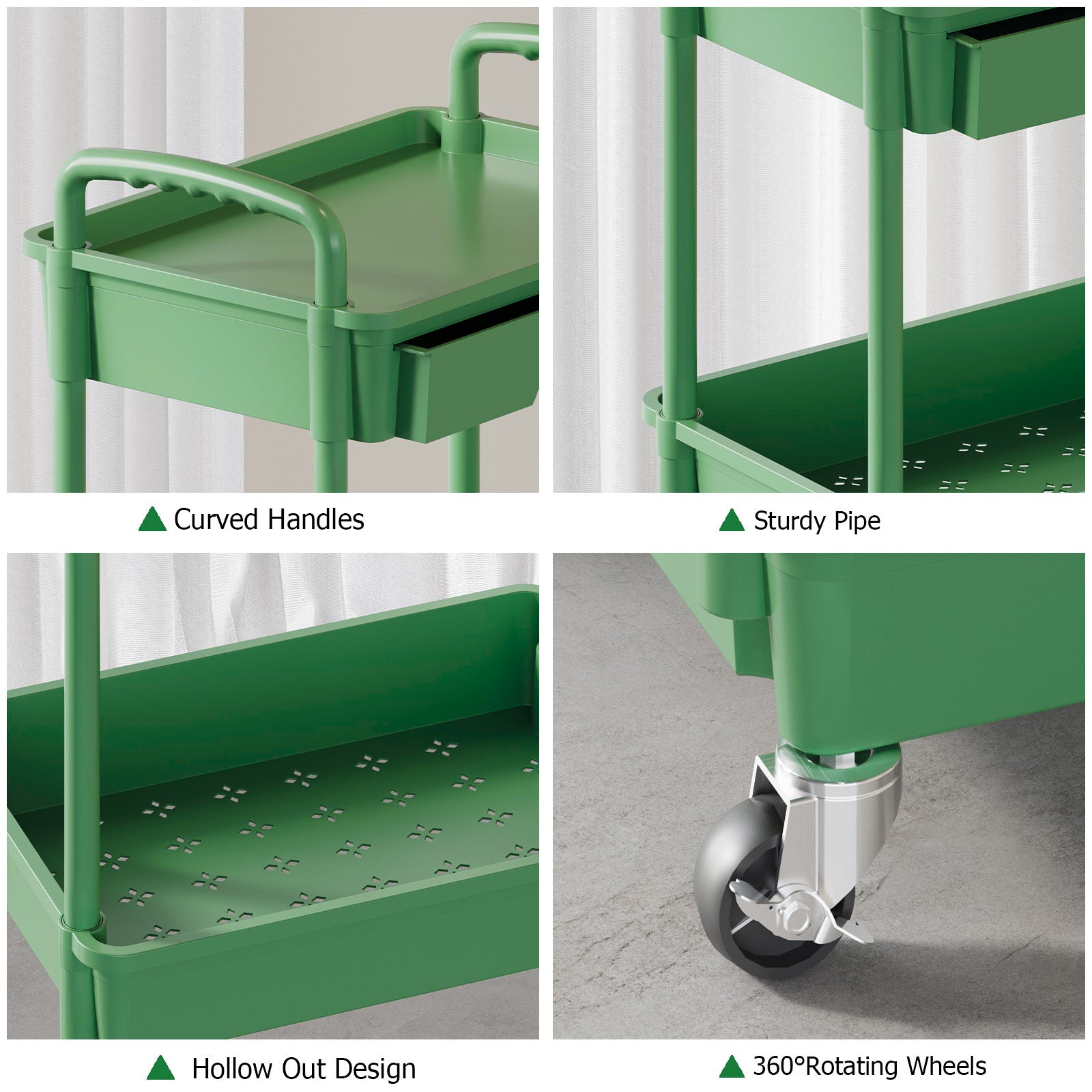 - 【Premium Material Utility Cart】Crafted from high-quality materials, the rolling storage cart is durable enough to withstand daily use, ensuring long-lasting performance and stability. It serves as a sturdy and reliable utility cart for various needs.