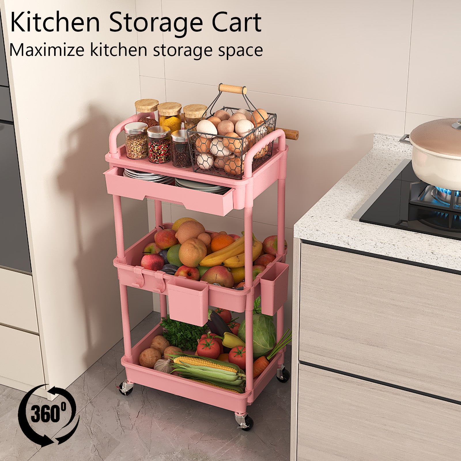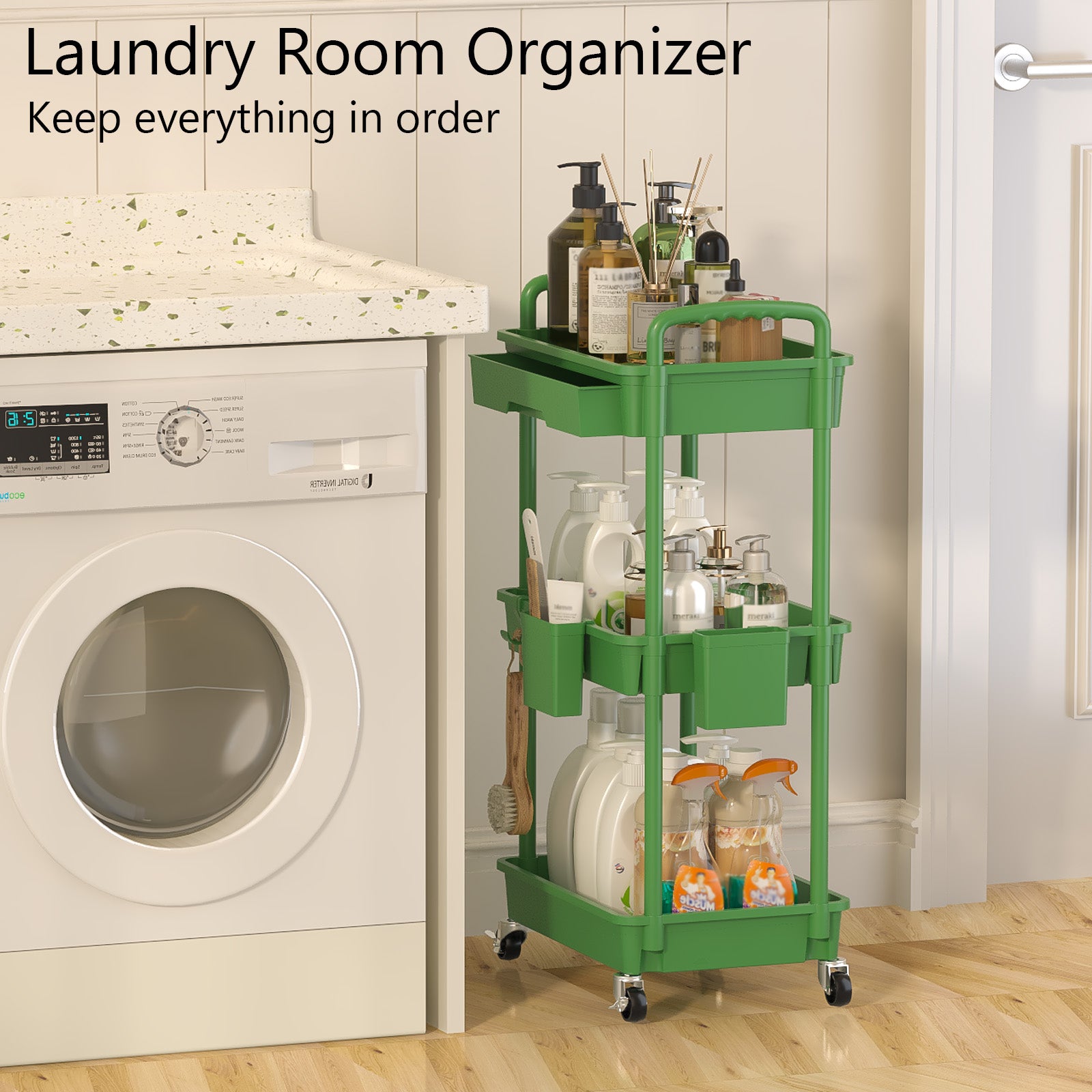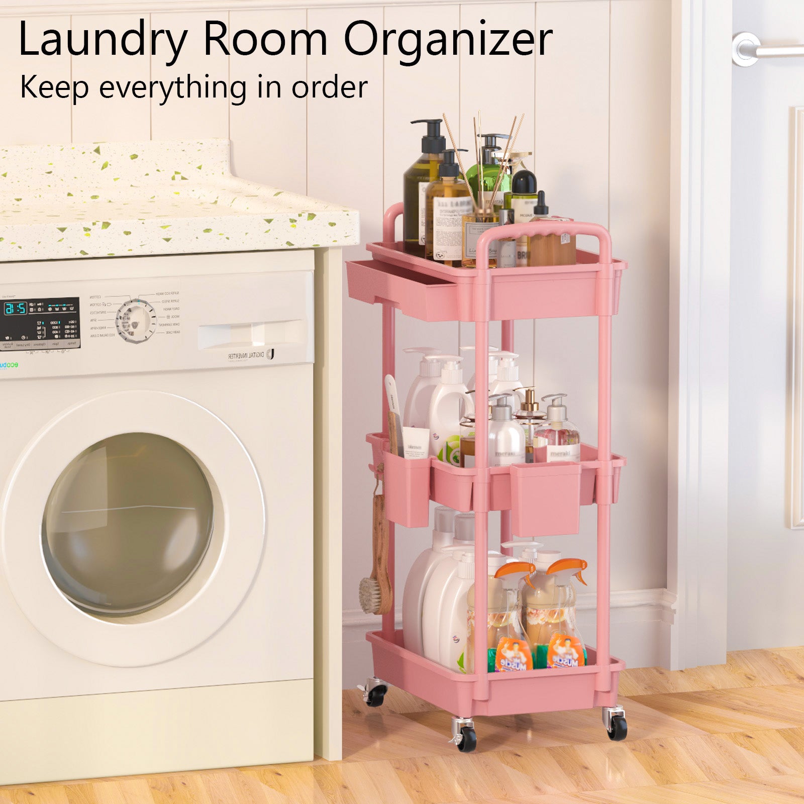 - 【Premium Material Utility Cart】Crafted from high-quality materials, the rolling storage cart is durable enough to withstand daily use, ensuring long-lasting performance and stability. It serves as a sturdy and reliable utility cart for various needs.