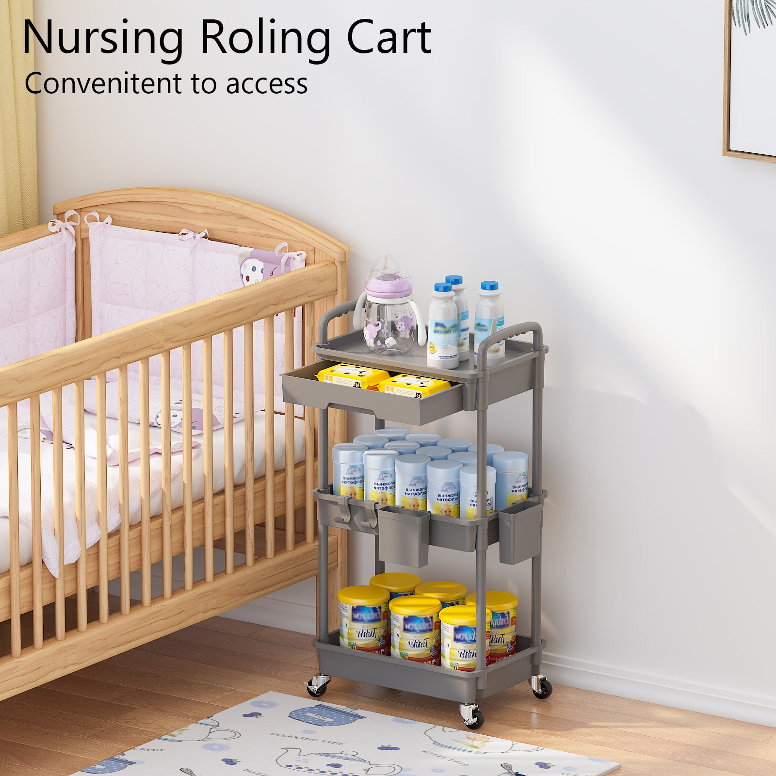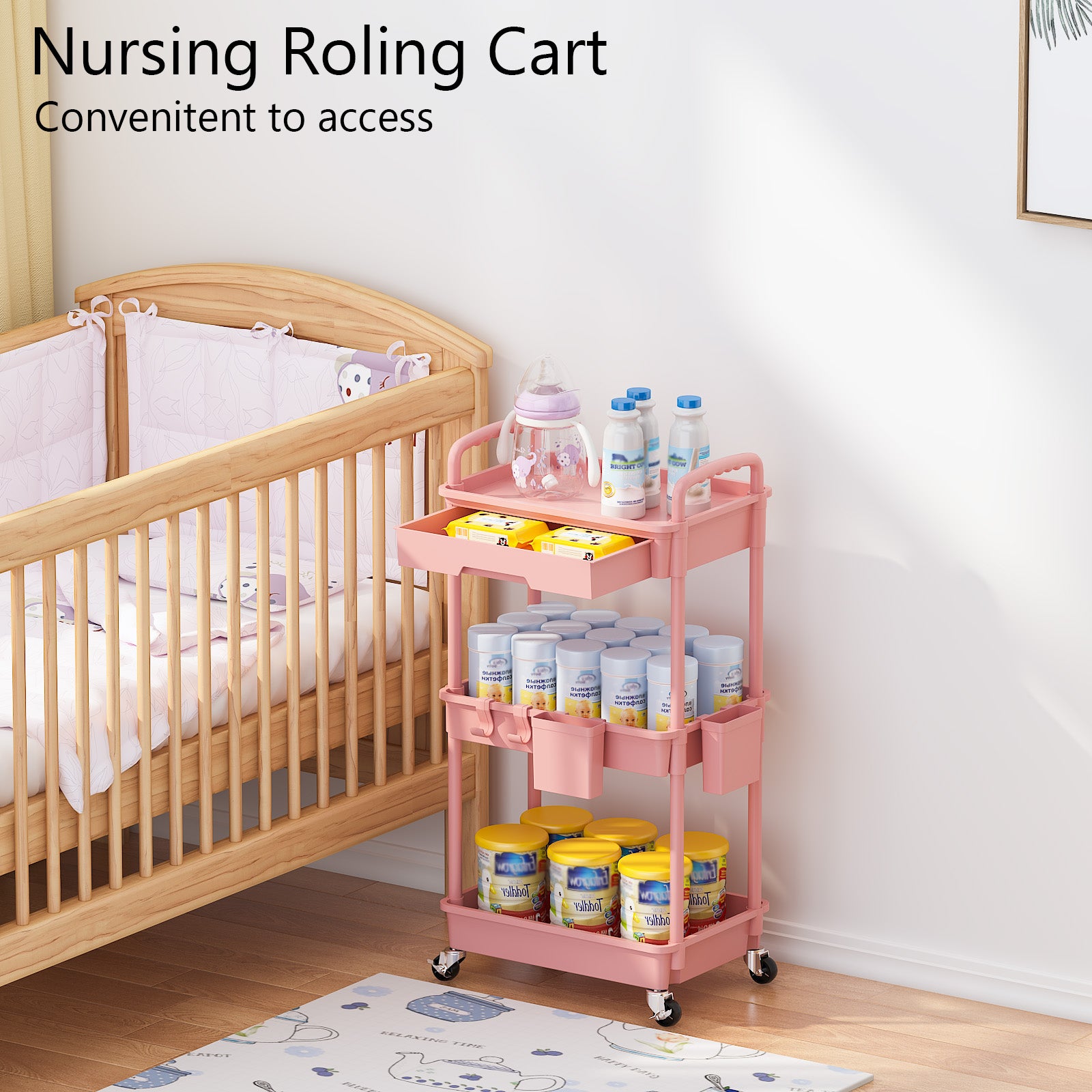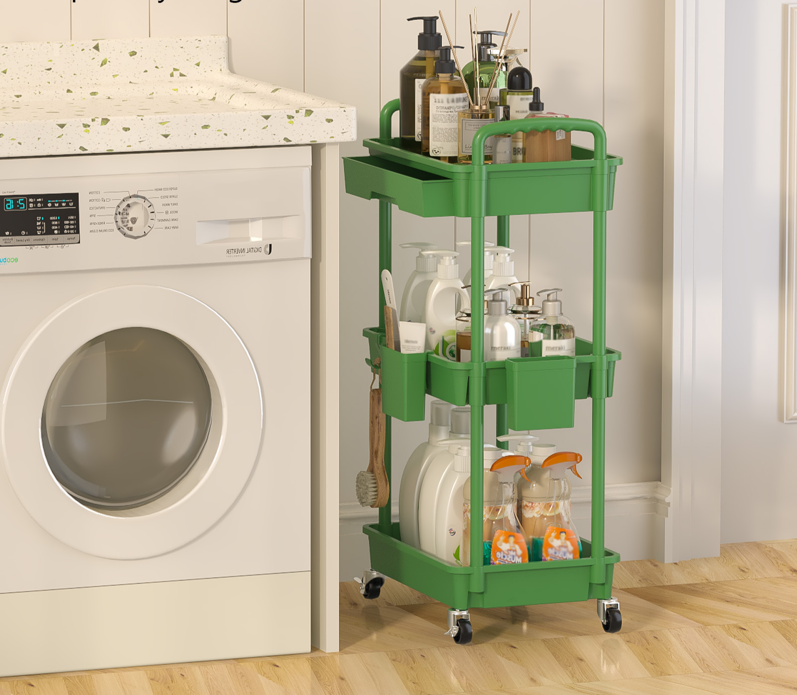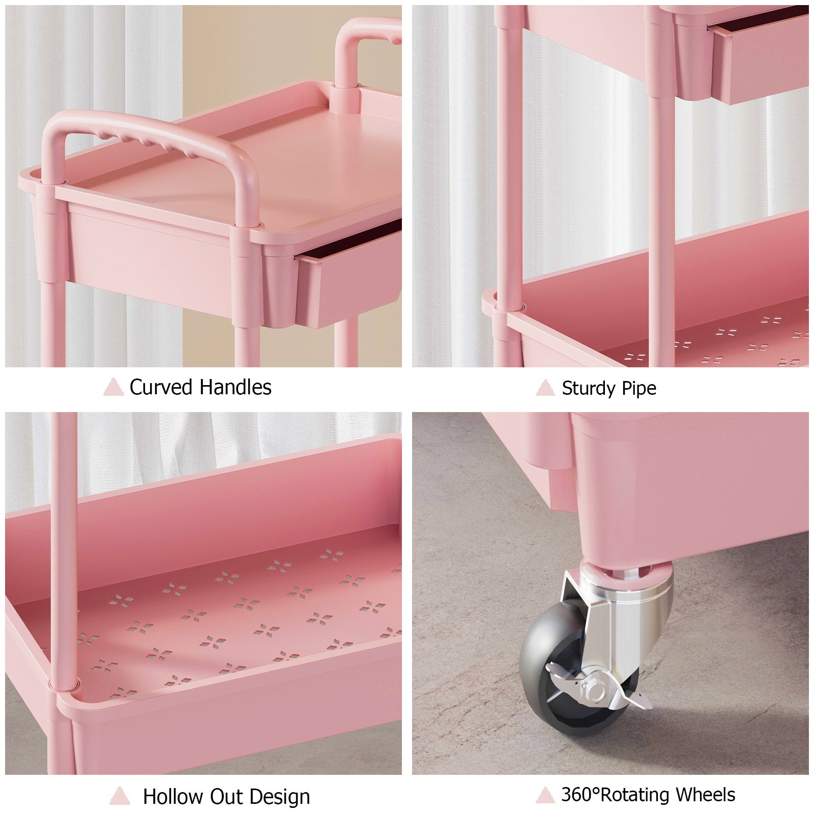 - 【Premium Material Utility Cart】Crafted from high-quality materials, the rolling storage cart is durable enough to withstand daily use, ensuring long-lasting performance and stability. It serves as a sturdy and reliable utility cart for various needs.