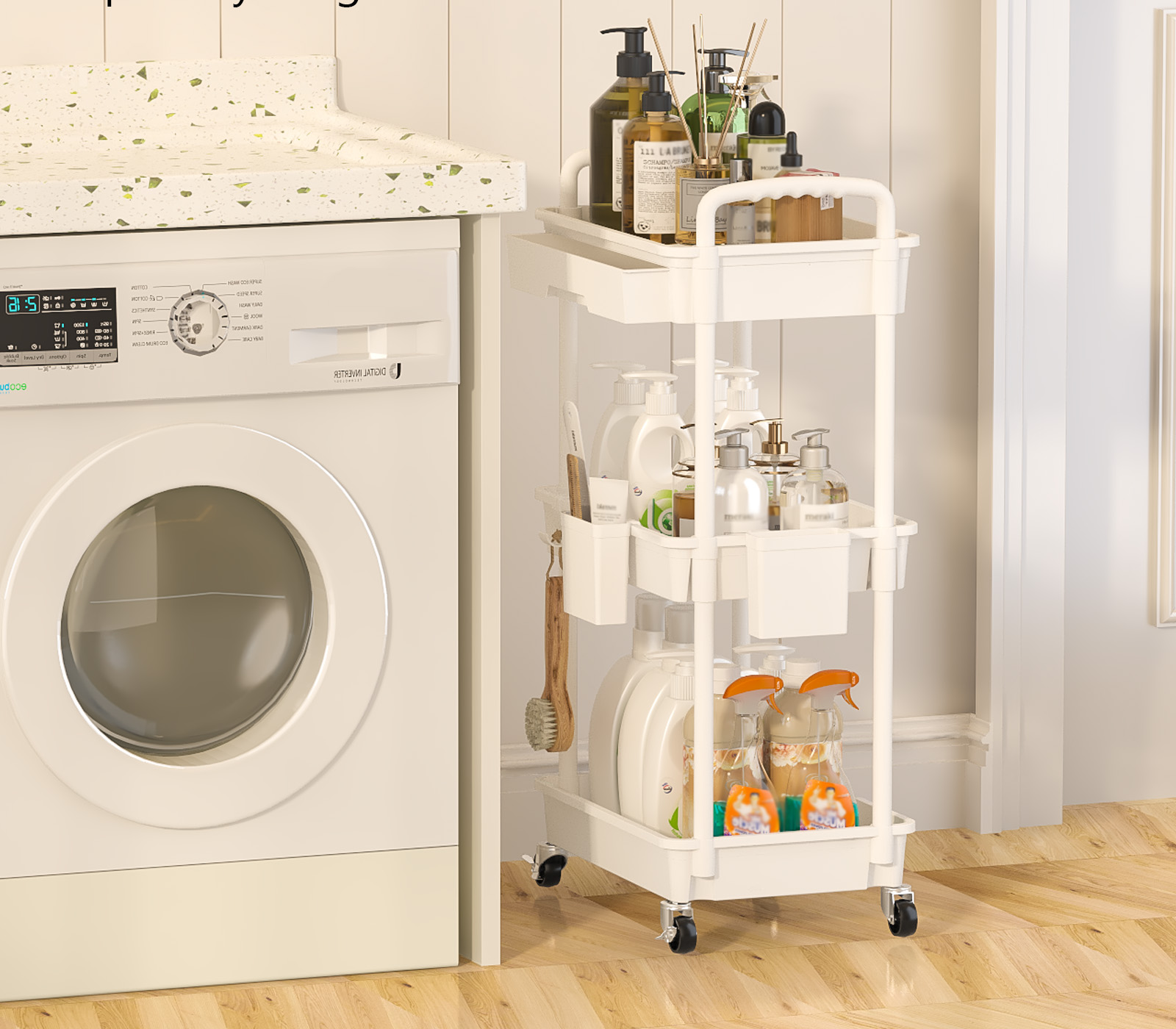 - 【Multi-Functional Storage Cart】Equipped with handles, hooks, and cup holders, this multi-purpose storage cart can be used as a bathroom cart, kitchen cart, or essential item for dormitories, adapting seamlessly to different scenarios.