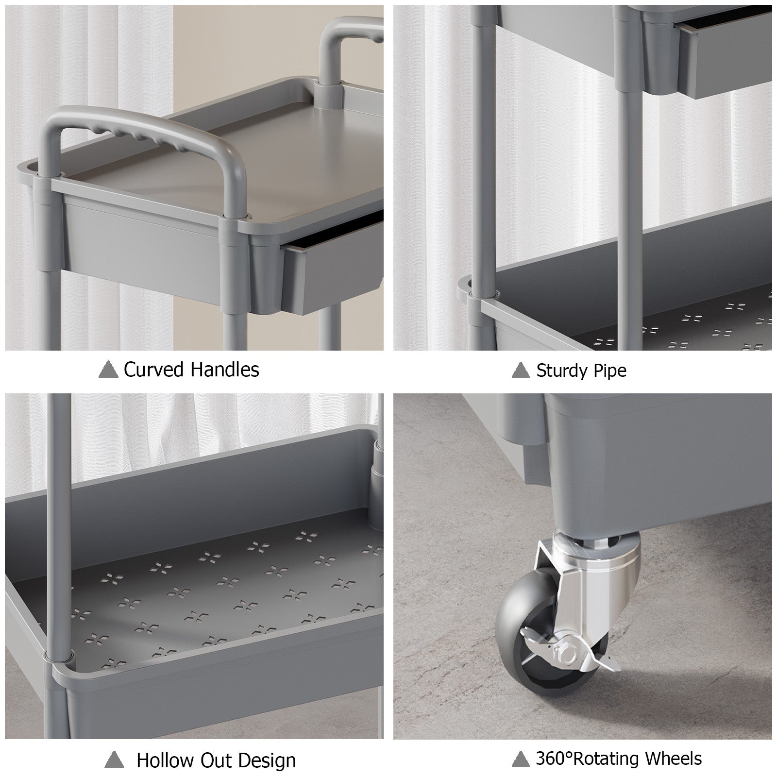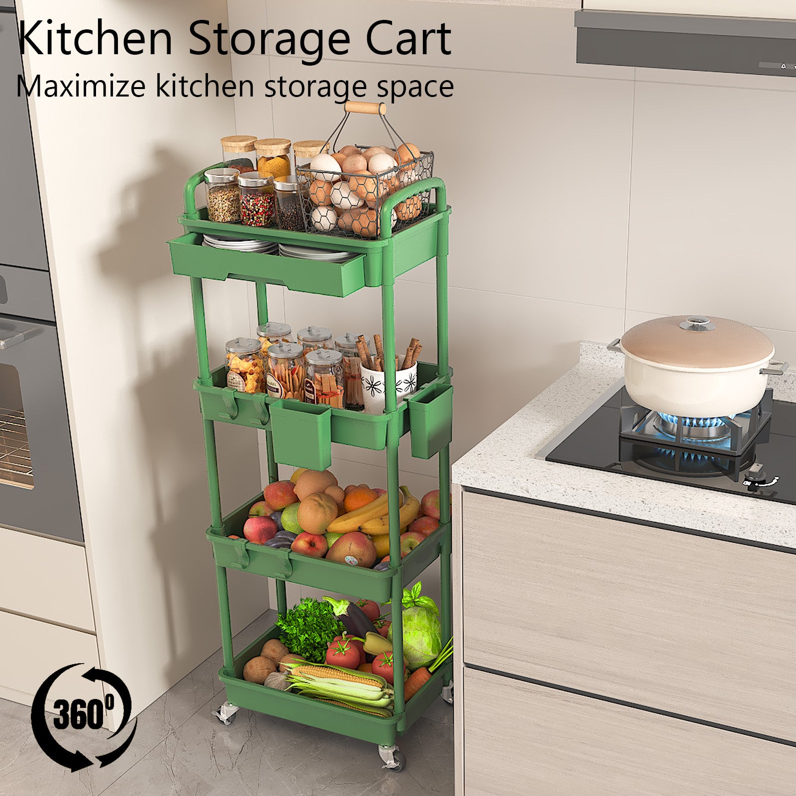 - 【Premium Material Utility Cart】Crafted from high-quality materials, the rolling storage cart is durable enough to withstand daily use, ensuring long-lasting performance and stability. It serves as a sturdy and reliable utility cart for various needs.
